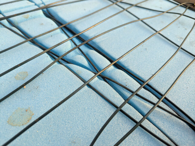 というわけで、スタイロフォームと電熱線の間にアルミシートを敷きました。