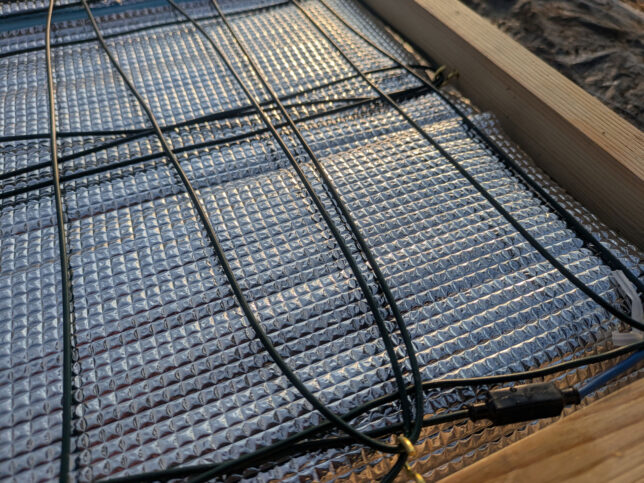 これを敷くことで地面の冷気を防ぎ、電熱線の熱を下げないため、温床の効率が上がります。