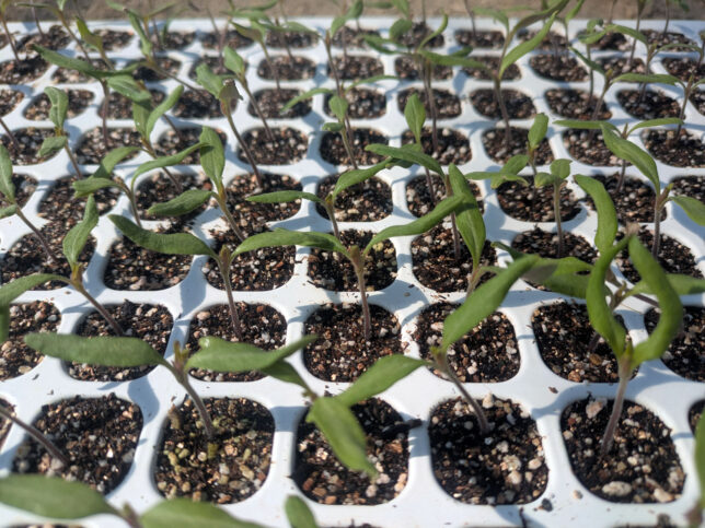 うちは小規模農家なので、トマトの栽培本数は最大でも1200本です。200穴セルトレイで6枚分です。