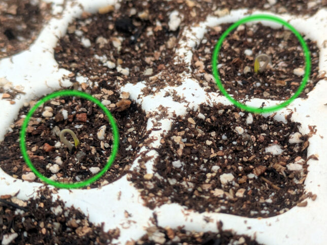 なお、発芽したら、というか土からフックが1本でも見えた時点で発芽完了です。