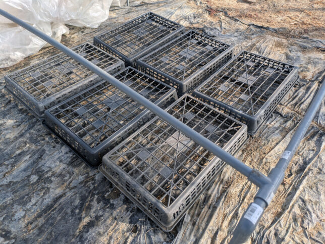 地べたに置くと冷えそうなので、まず育苗箱をひっくり返して置きます。