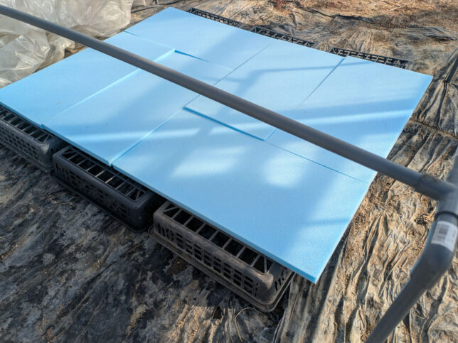 ここにスタイロフォームを敷きます。これは断熱材です。