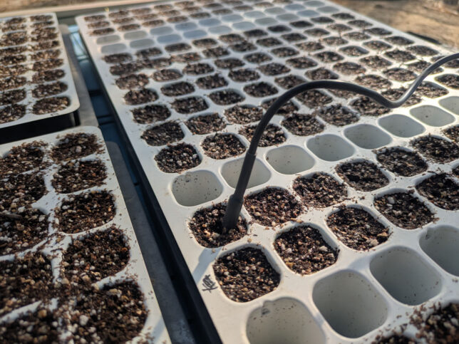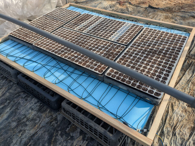 うち(兵庫県稲美町)ではビニールハウスの中でも夜間は0℃近くまで下がるので、発芽させるには絶っっ対に加温が必要です。